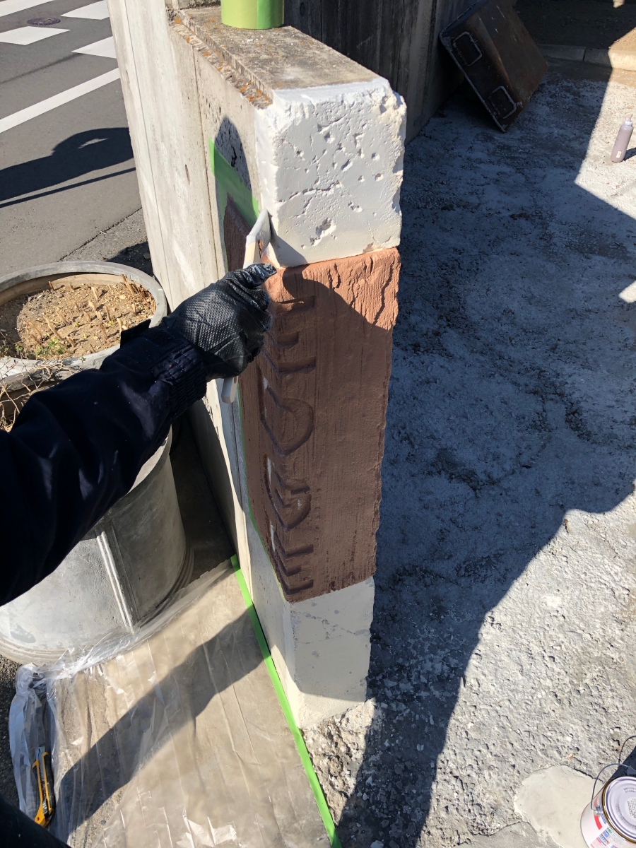 その後にモルタル造形を施して、文字や色などを描きます。