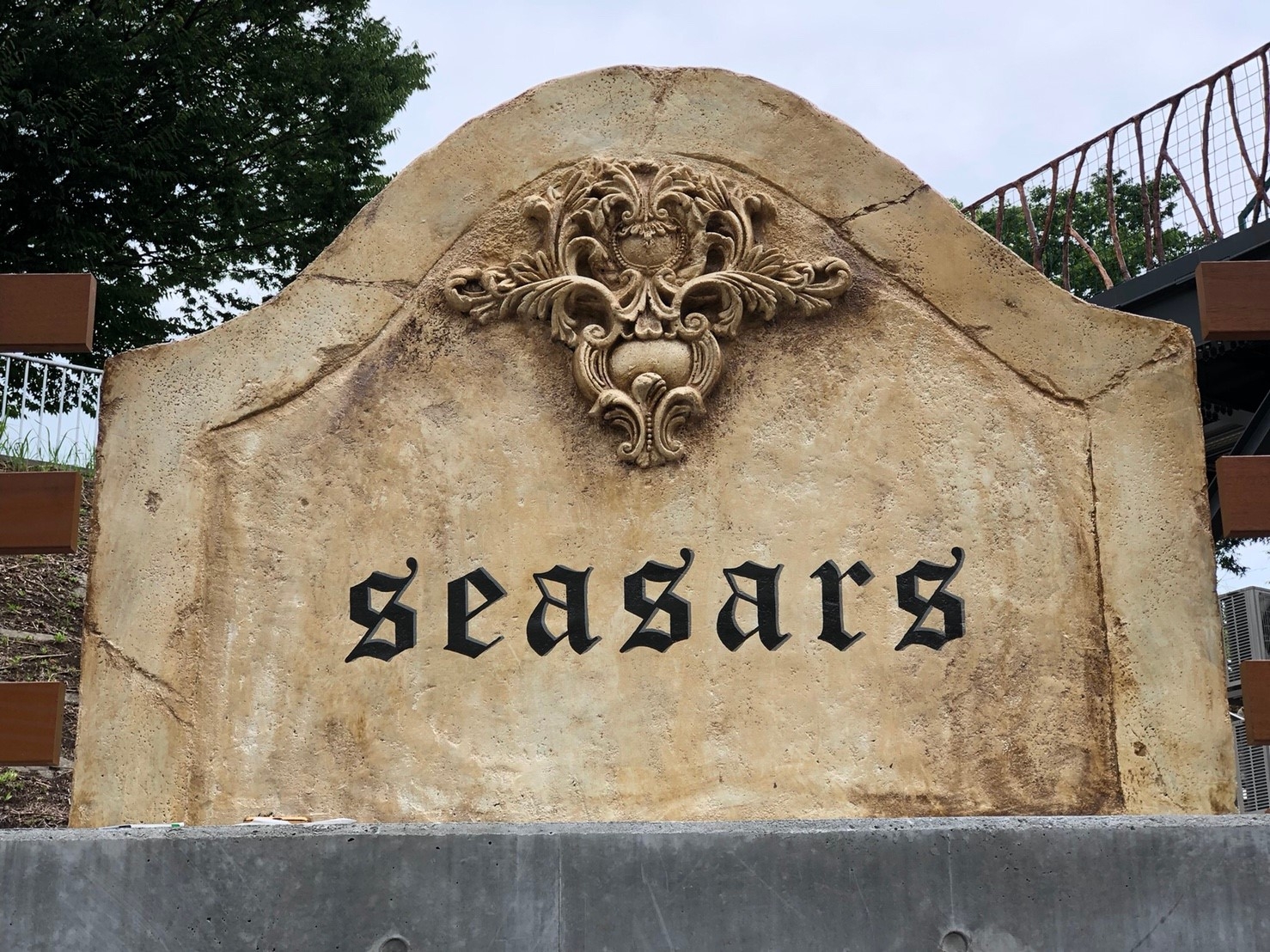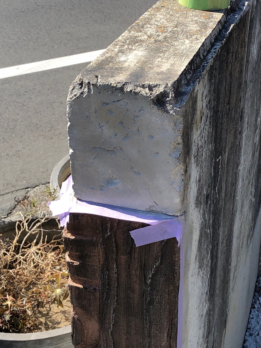 コンクリートの外構の切り欠いた部分のリペアです。せっかくなので、木彫りと文字切り抜きと遊んで見ました!